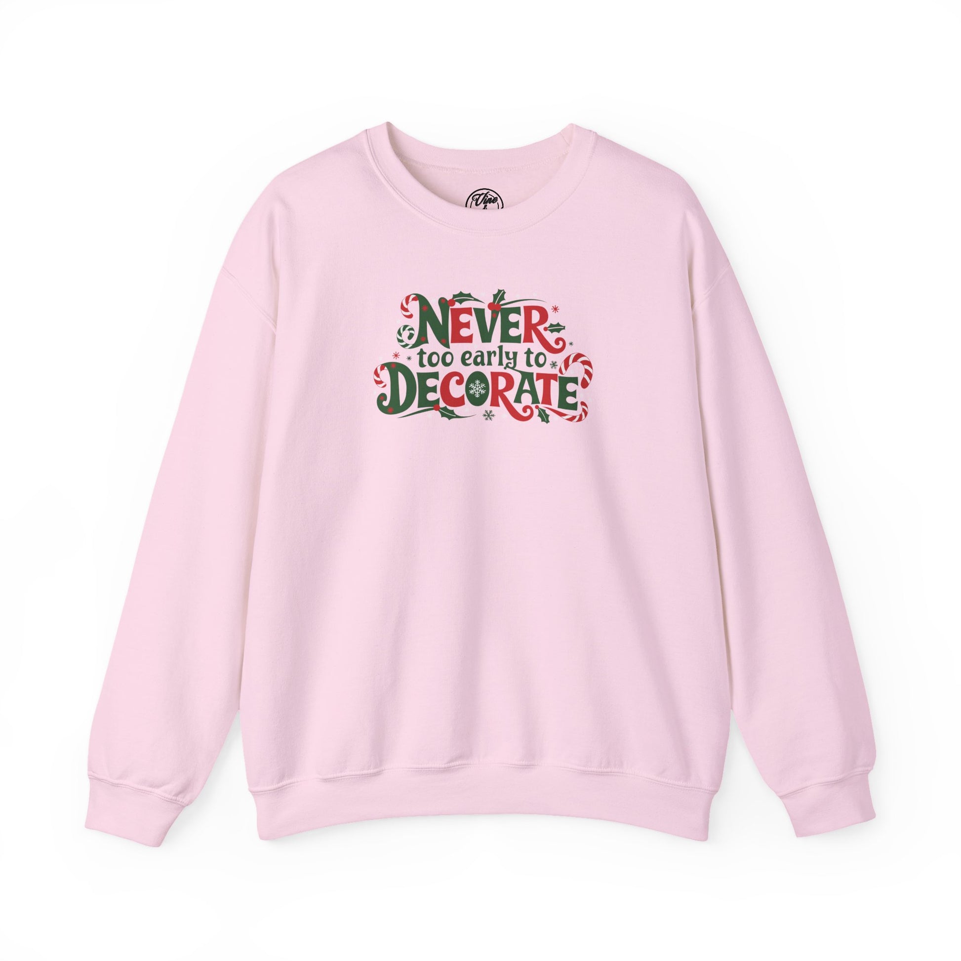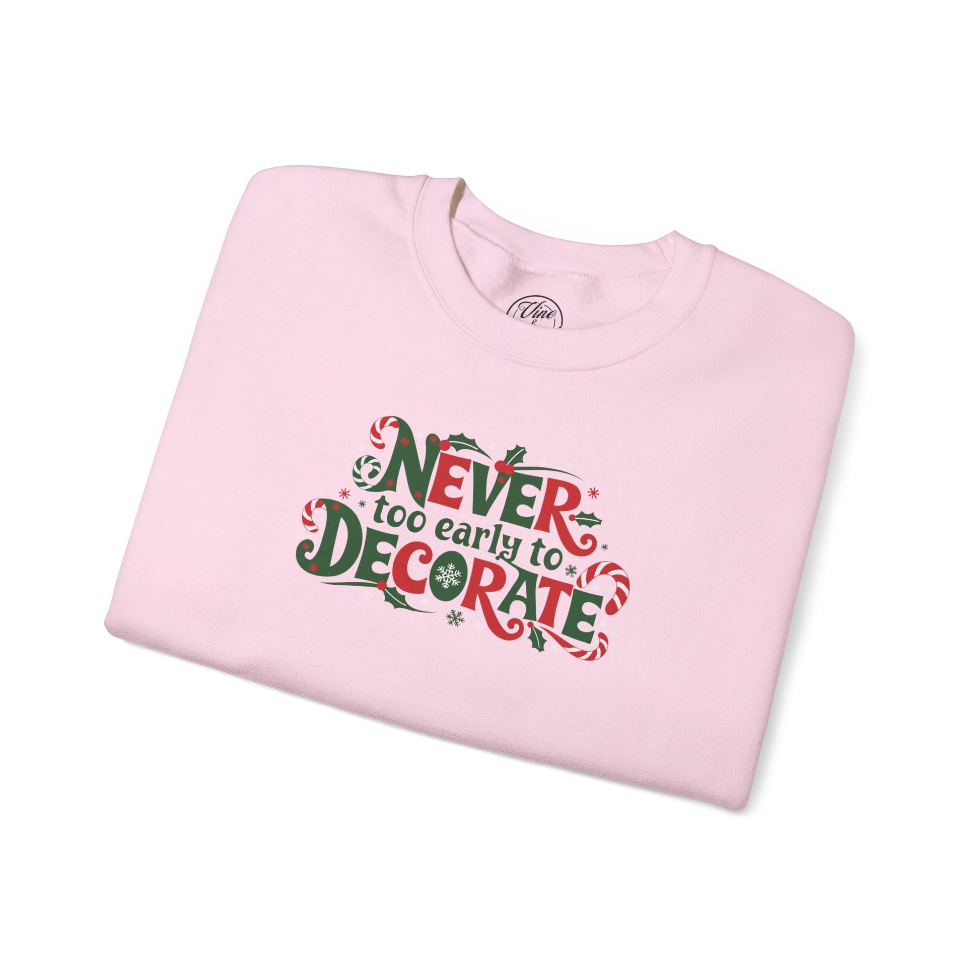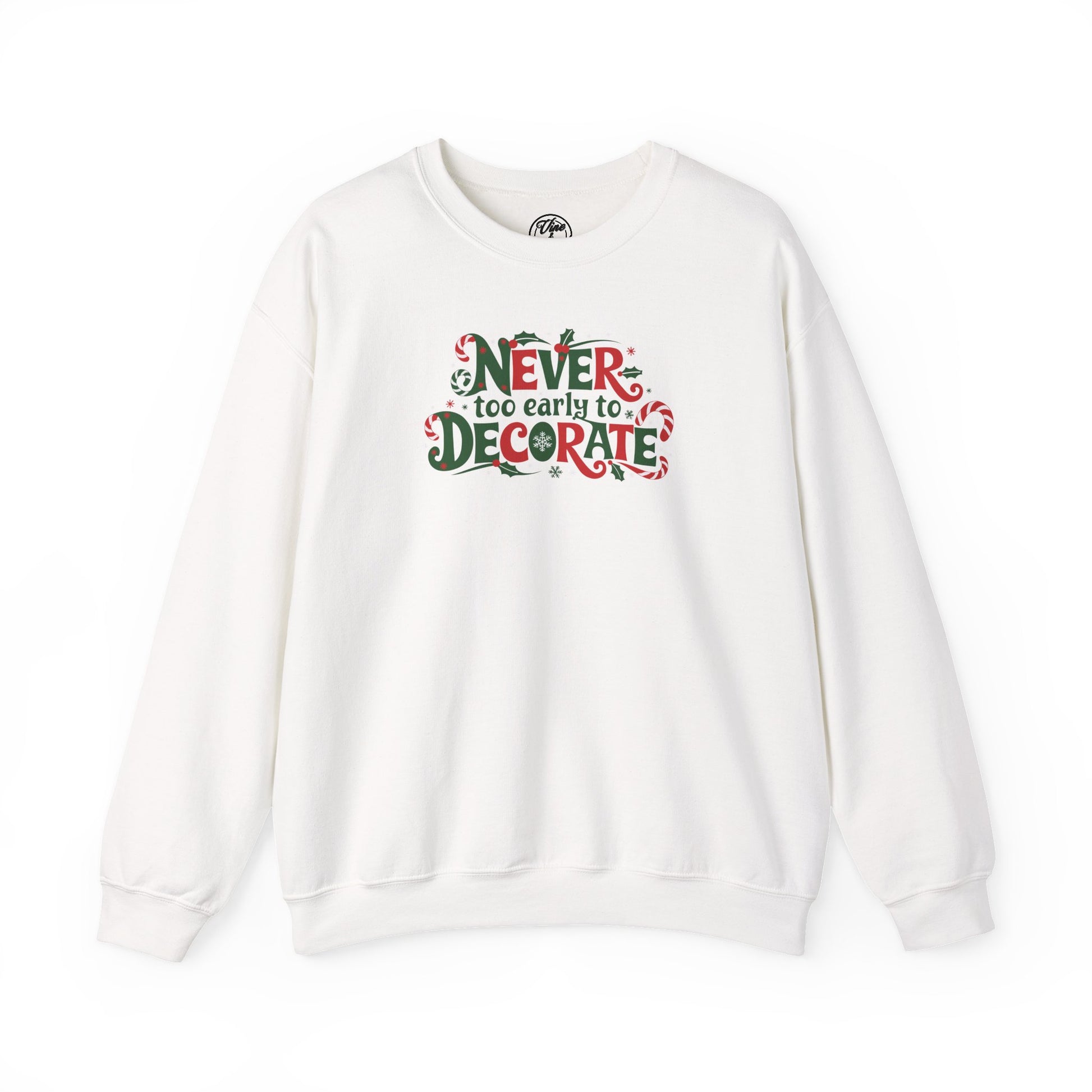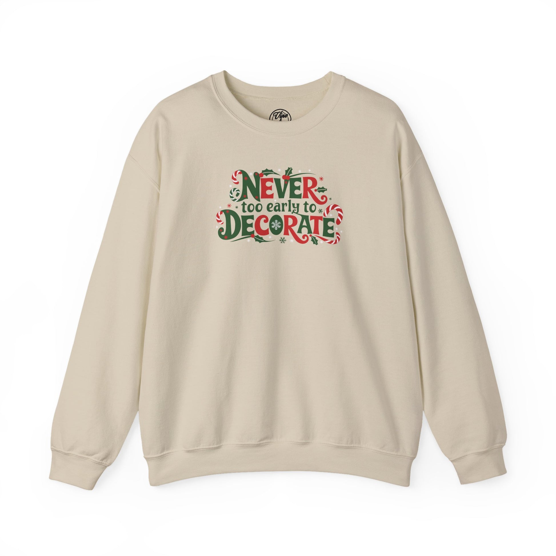 CHRISTMAS "NEVER TOO EARLY TO DECORATE" UNISEX CREWNECK SWEATSHIRT