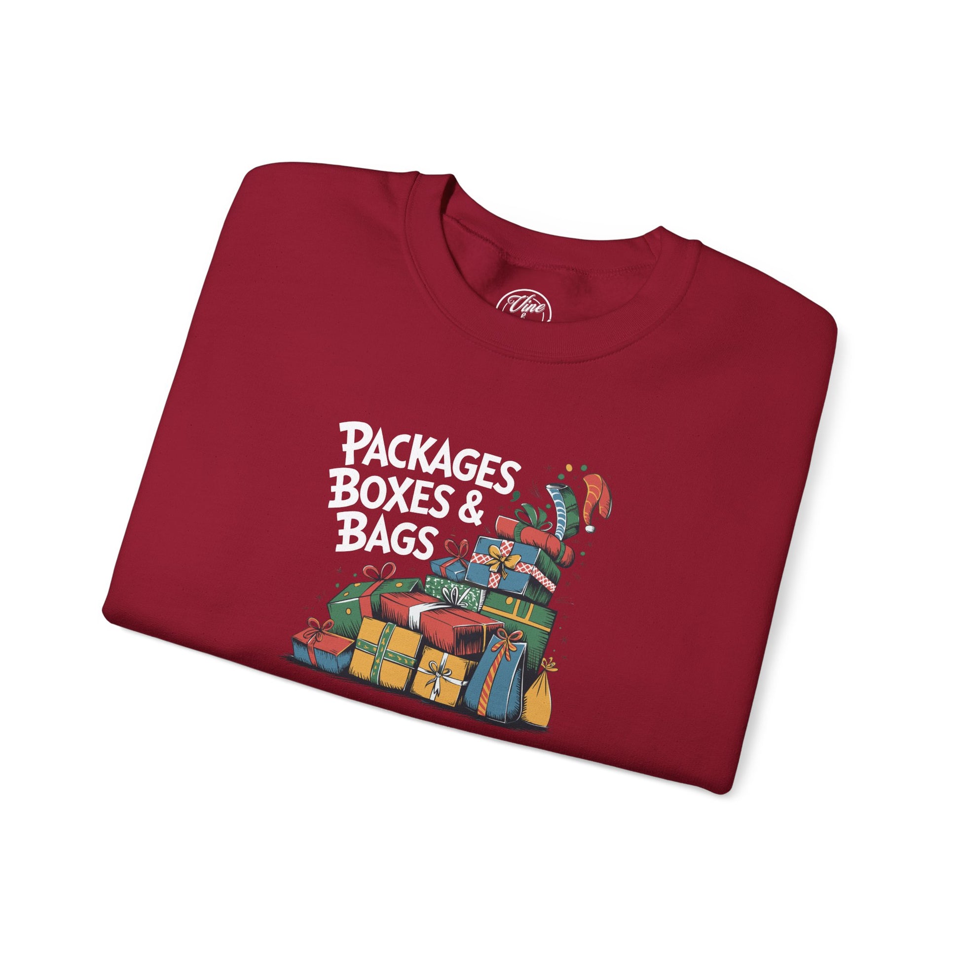 CHRISTMAS "PACKAGES BOXES & BAGS" UNISEX CREWNECK SWEATSHIRT