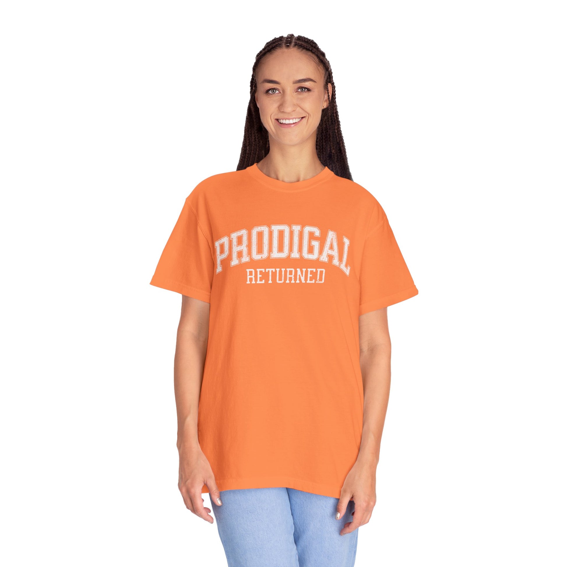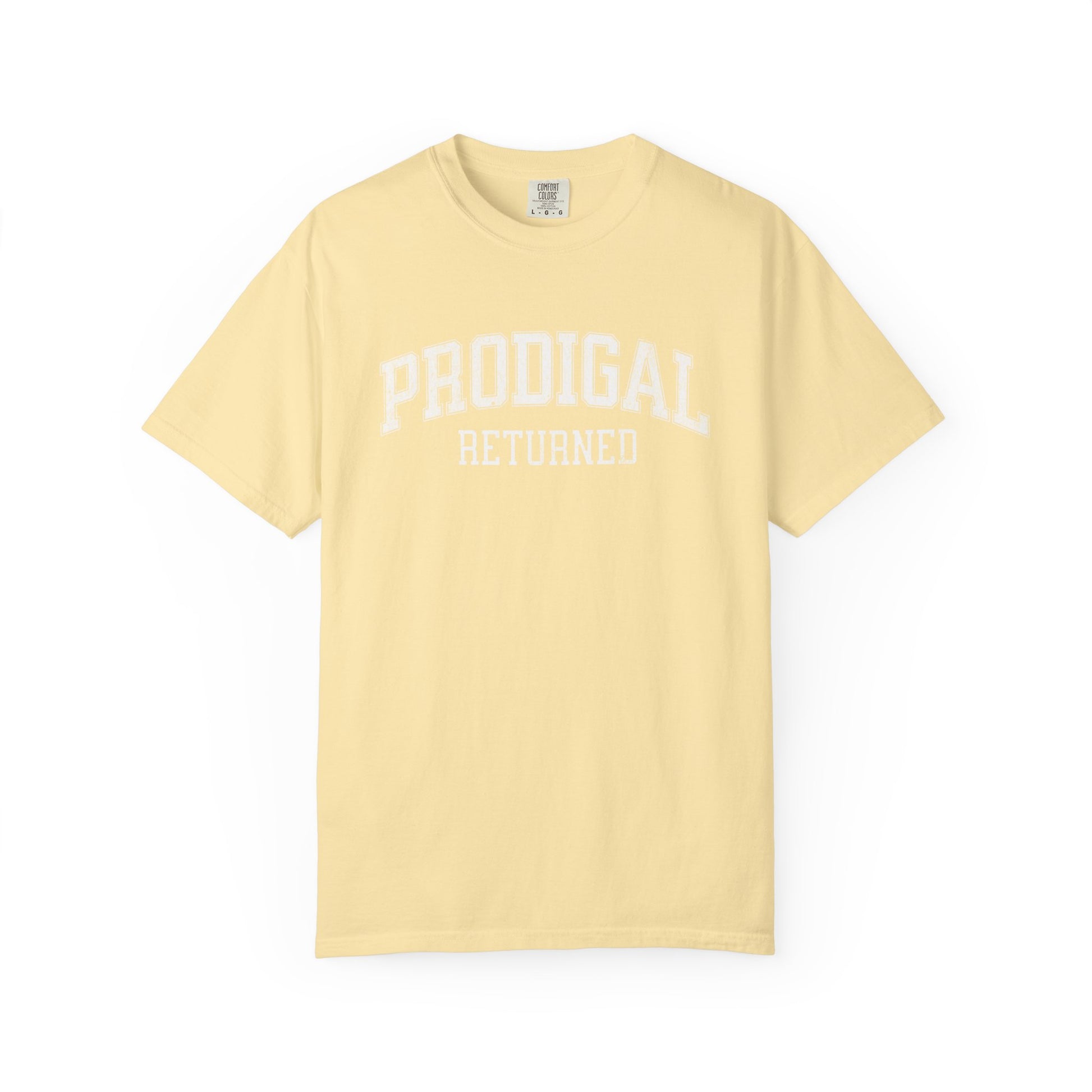 INSPIRATION: Celebrate a story of redemption and grace with the "Prodigal Returned" T-shirt from Vine & Branch. This exclusive design is inspired by the transformative parable of the Prodigal Son, as recounted in Luke 15:11–32, reminding us of the boundless mercy and love of the Father. Crafted with simplicity in mind, the "Prodigal Returned" features a classic, minimal college-style font that resonates with both vintage charm and modern minimalism. Perfect for the spring and summer seasons, this t-shirt is more than just attire—it's a testament to faith and a conversation starter about the life-changing power of coming home.