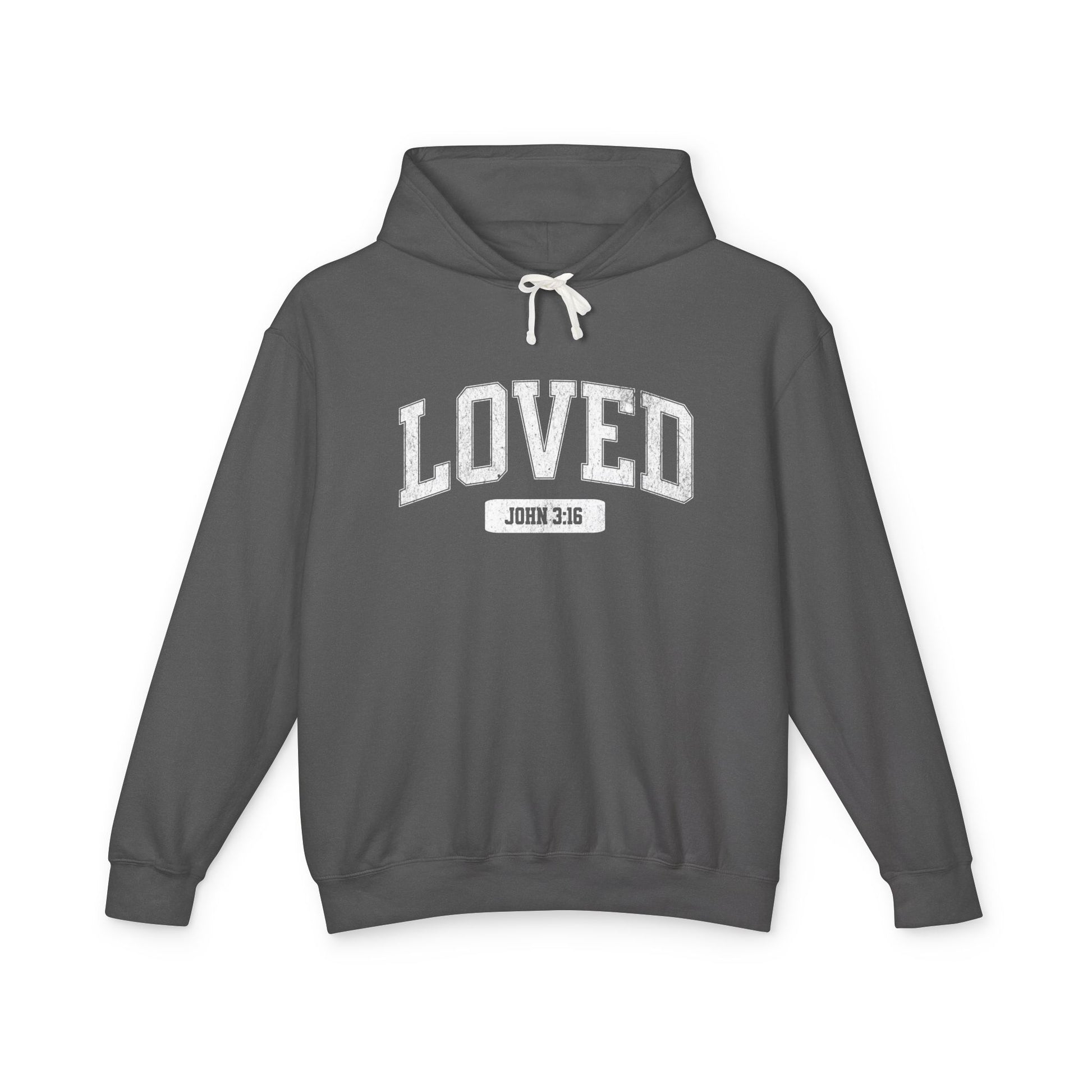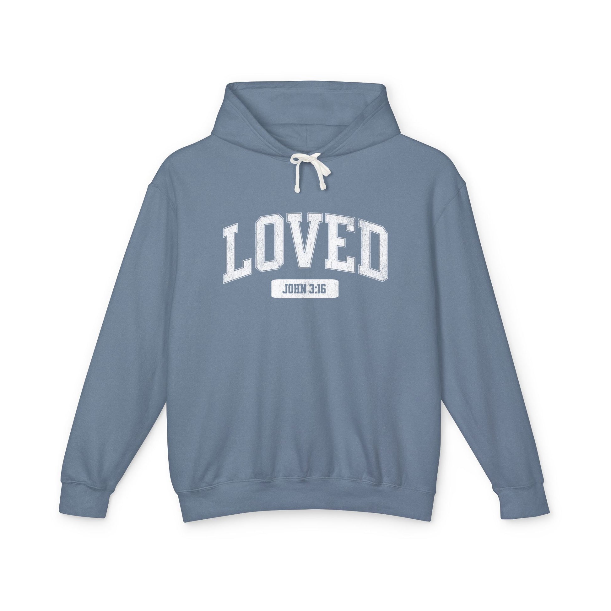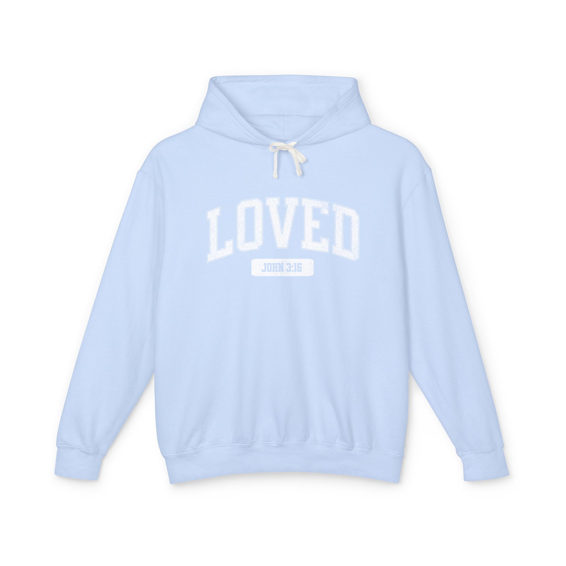 "LOVED" VARSITY UNISEX PREMIUM LIGHTWEIGHT HOODIE